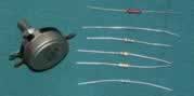 在真空中加热合金,合金蒸发,使瓷棒表面形成一层导电金属膜。刻槽和改变金属膜厚度可以控制阻值。这种电阻和碳膜电阻相比,体积小、噪声低、稳定性好,但成本较高。 |